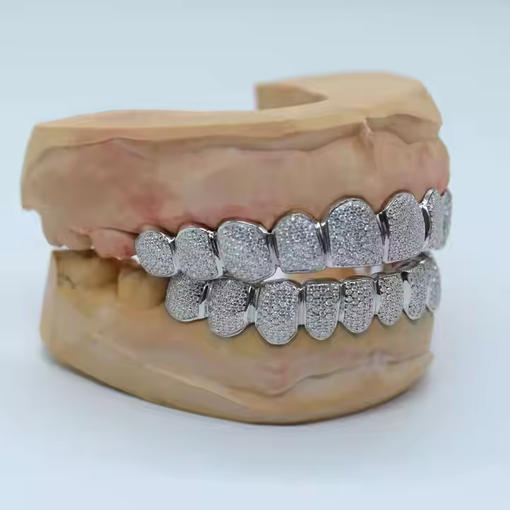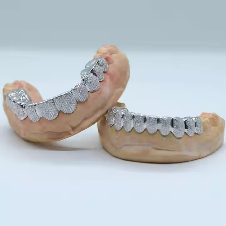 Flex your smile with The Ice Legacy’s custom VVS moissanite grillz — where high-end ice meets true street energy. Handcrafted from solid 925 sterling silver and flooded with VVS moissanite stones, each set delivers insane shine, clarity, and a diamond-like finish that hits from every angle. Whether you’re rocking 6-piece tops, full sets, or custom fang styles, our grillz bring next-level drip to your look. Designed for the bold, the fearless, and the ones who lead the wave — these aren’t just grillz, they’re a lifestyle. Stay iced. Stay legendary.