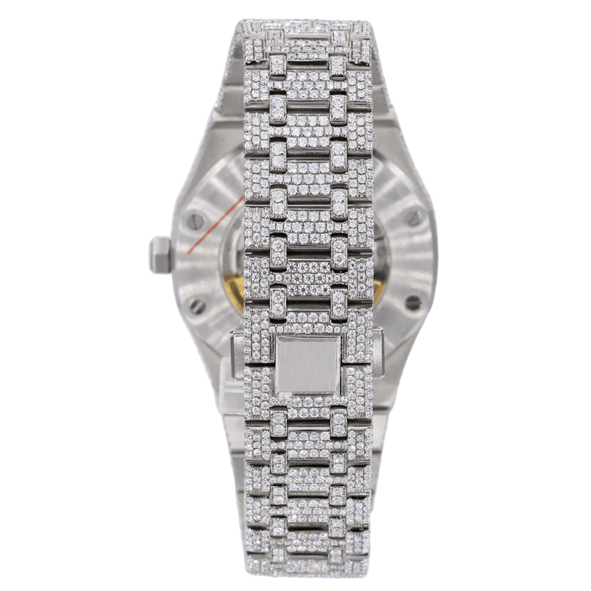 - Are your watches made with real diamonds?Our watches are encrusted with high-quality lab-created Moissanite stones, known for their diamond-like brilliance. They pass standard diamond testers.