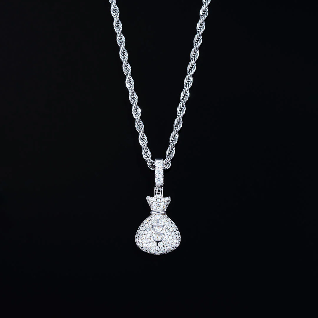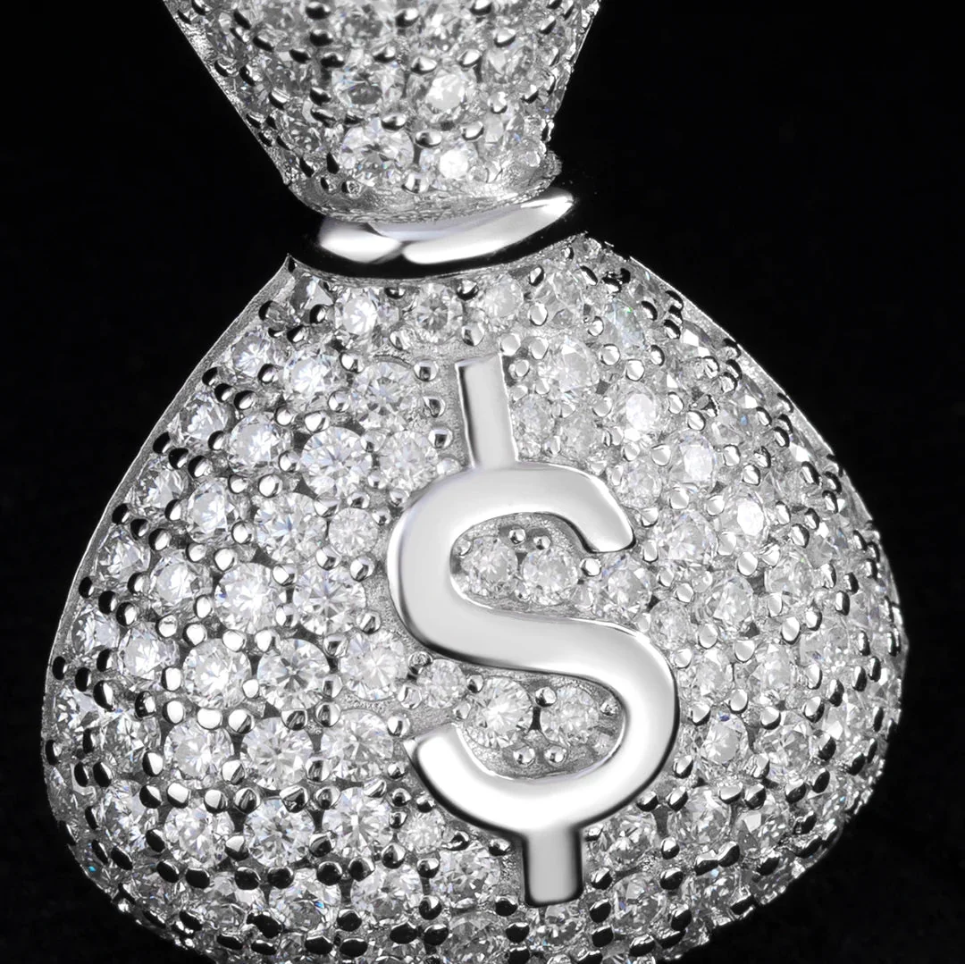 Iced Money Bag Pendant – VVS Moissanite & 925 Silver Finish