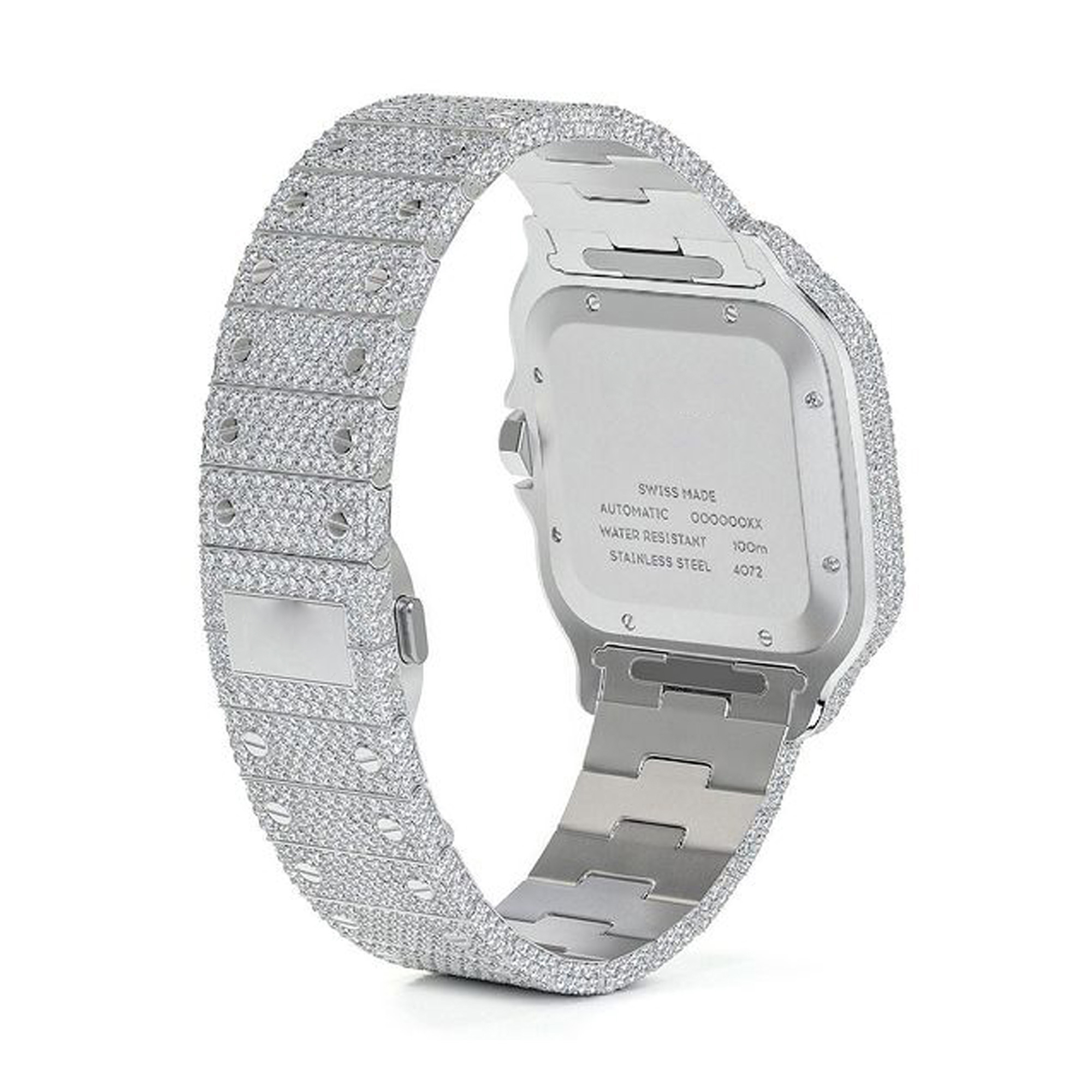 - Are your watches made with real diamonds?Our watches are encrusted with high-quality lab-created Moissanite stones, known for their diamond-like brilliance. They pass standard diamond testers.